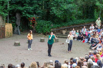 Het openluchttheater en de omliggende paden zijn grotendeels verhard, waardoor rolstoelen en kinderwagens goed toegang hebben.